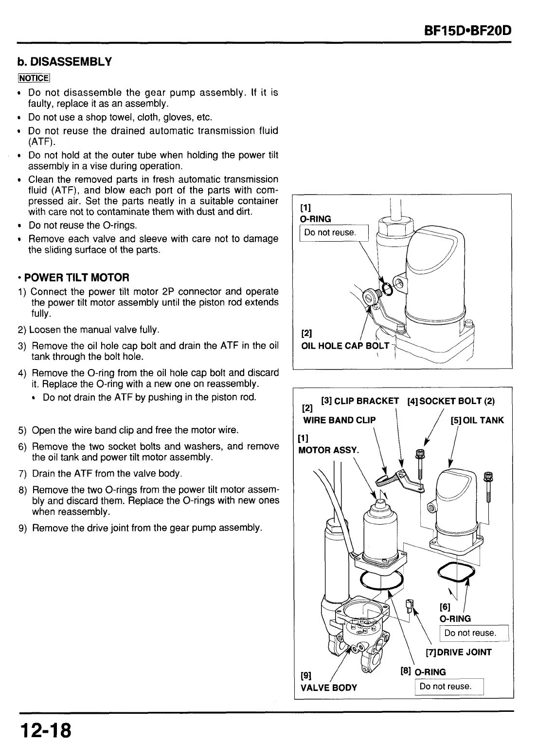 Remove the two O-rings from the power tilt motor assem-