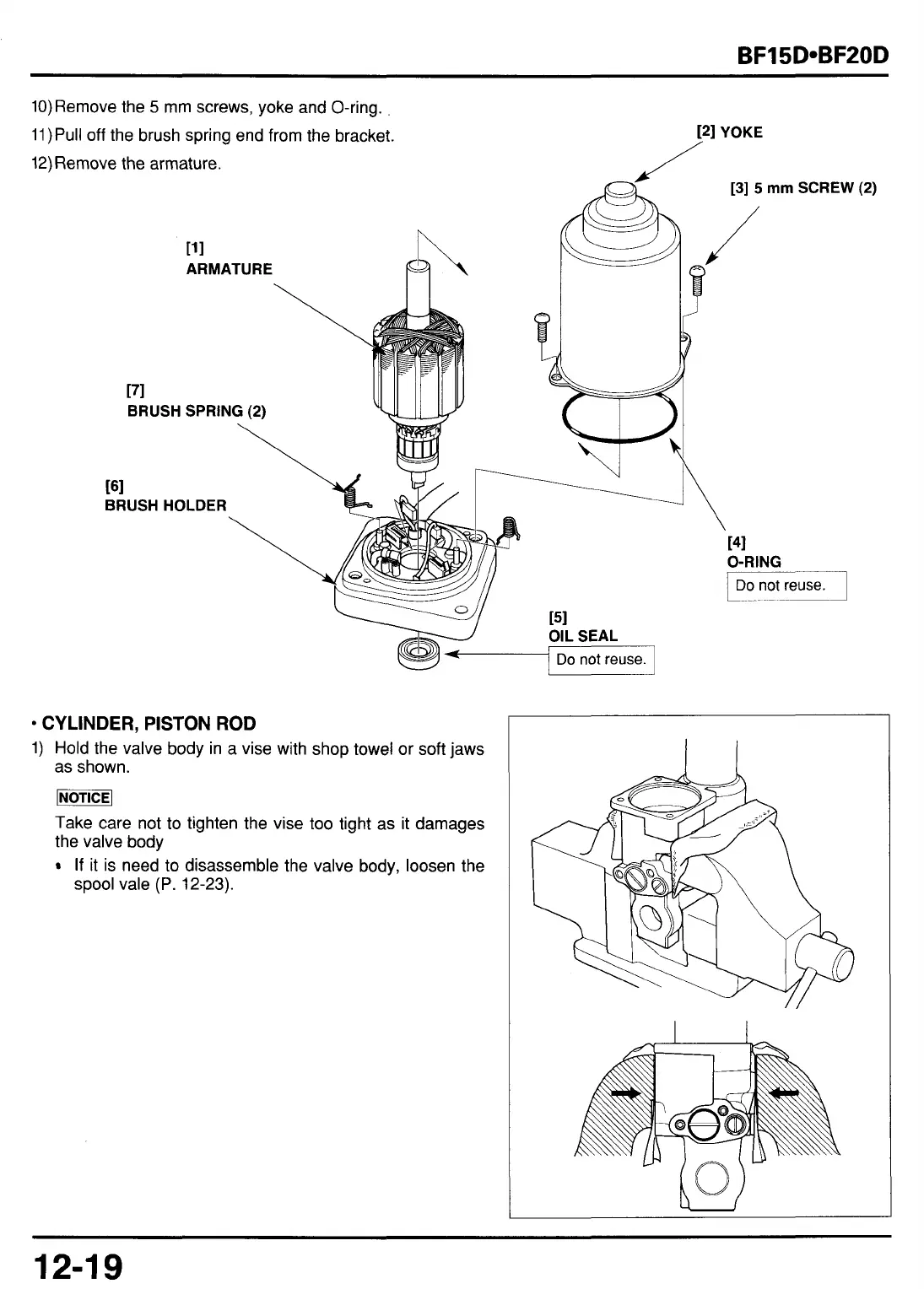 1) Hold the valve body in a vise with shop towel or