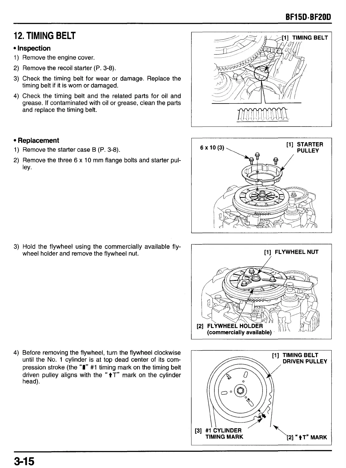 3) Check the timing belt for wear or damage. Replace the