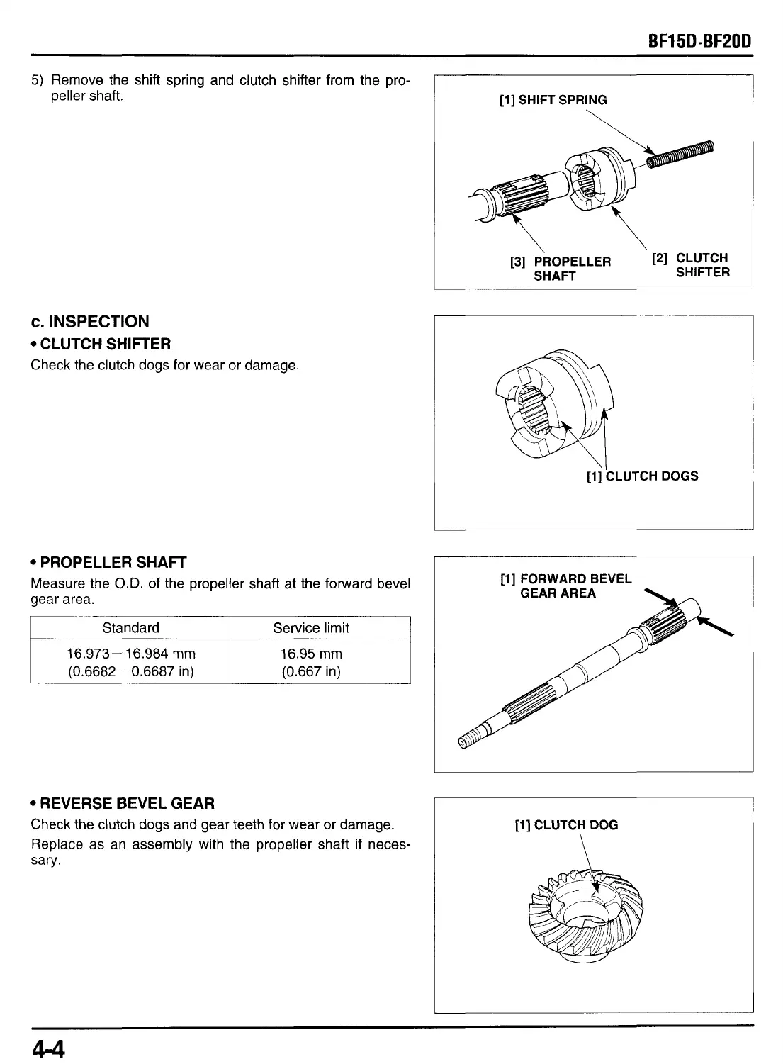 Check the clutch dogs and gear teeth for wear or damage.