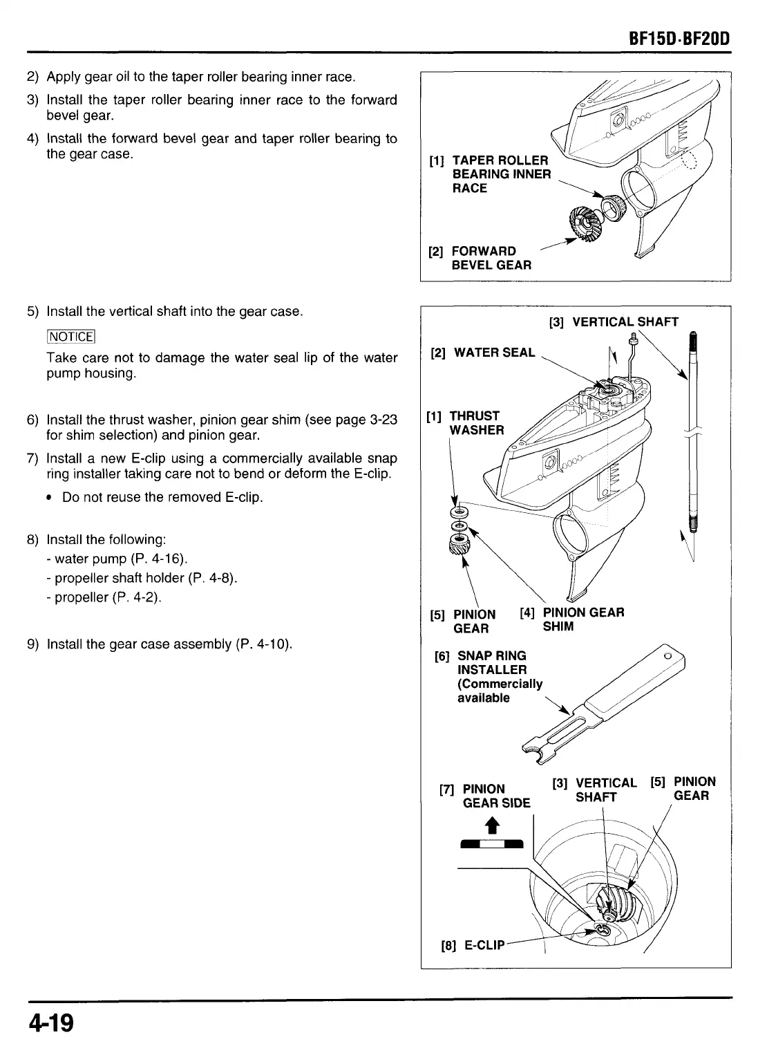 6) Install the thrust washer, pinion gear shim (see page 3-23