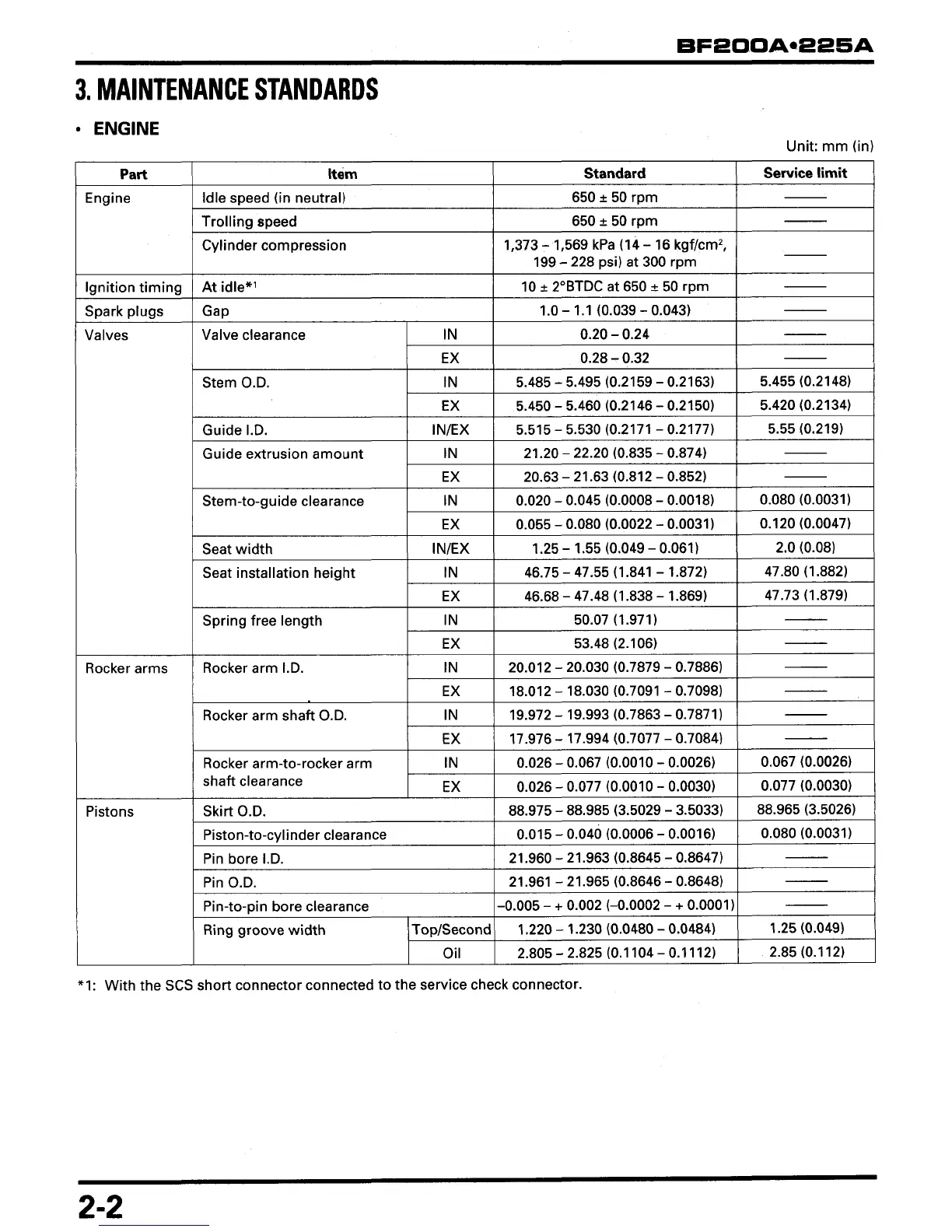 Honda BF200A - Maintenance Standards; Engine Maintenance Standards