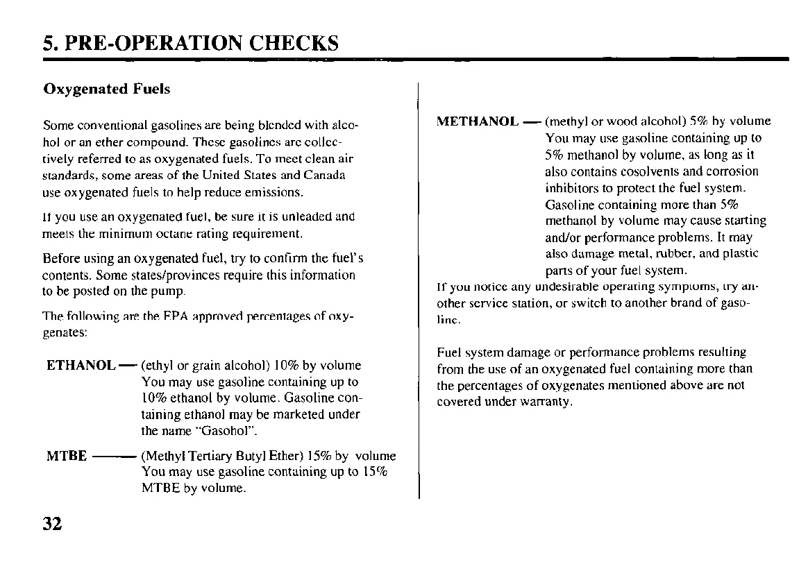 Before using an oxygenated fuel, try to confirm the fuel’s
