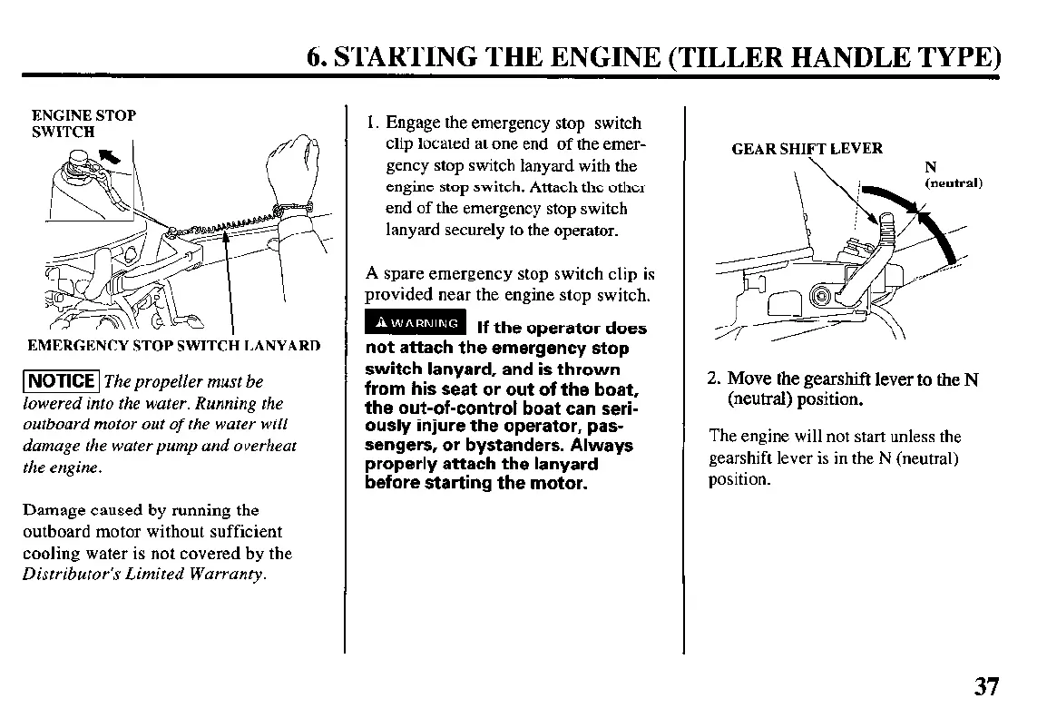 6. STARTING THE ENGINE (TILLER HANDLE TYPE)
