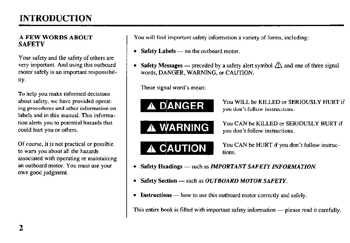 l Safety Section - such as OUTBOARD MOTOR SAFETY.