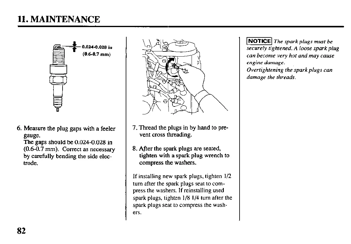 spark plugs, tighten l/8 l/4 turn after the
