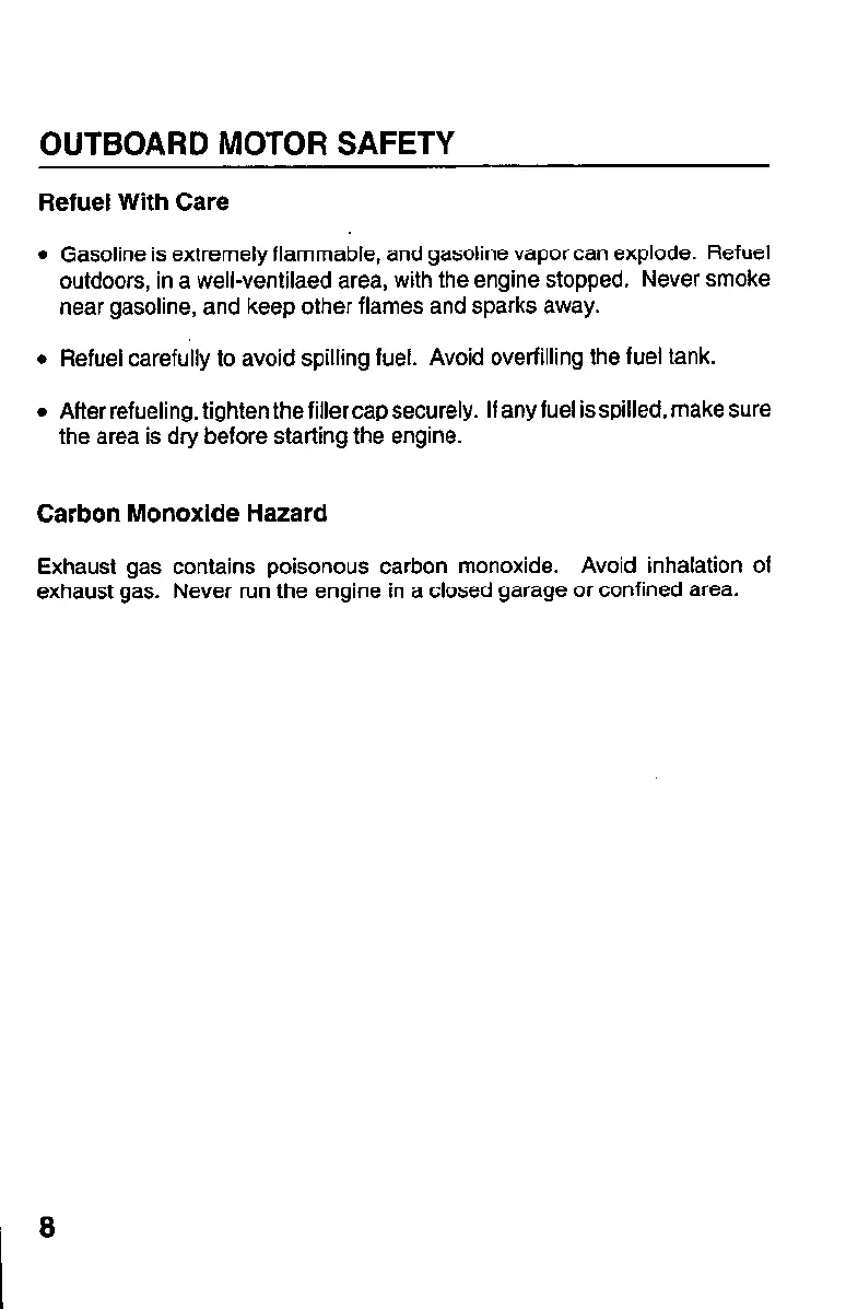 exhaust gas. Never run the engine in a closed garage or confined area.