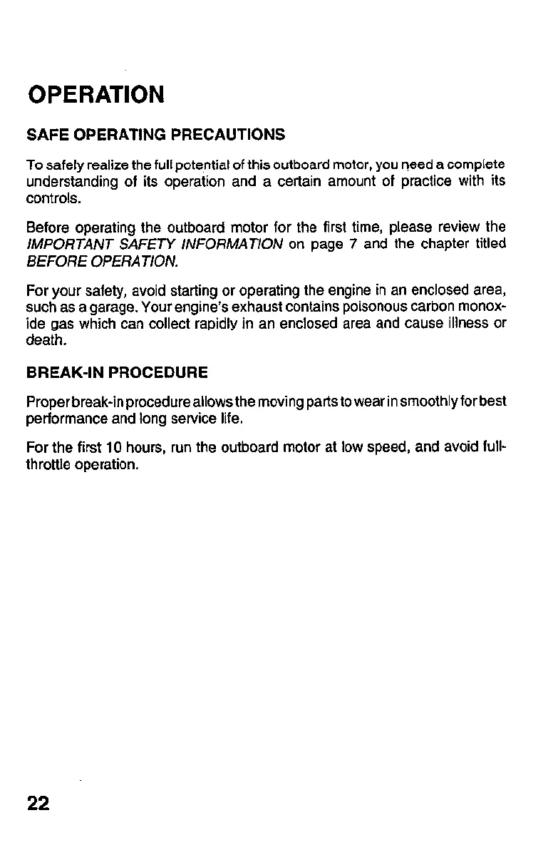 For the first 10 hours, run the outboard motor at low speed, and avoid full-