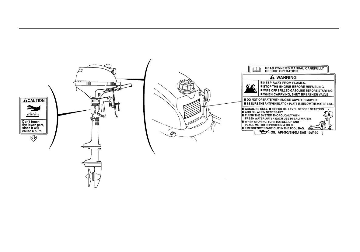 permanent parts of your outboard motor. If a label comes off or becomes hard to read, contact an authorized Honda