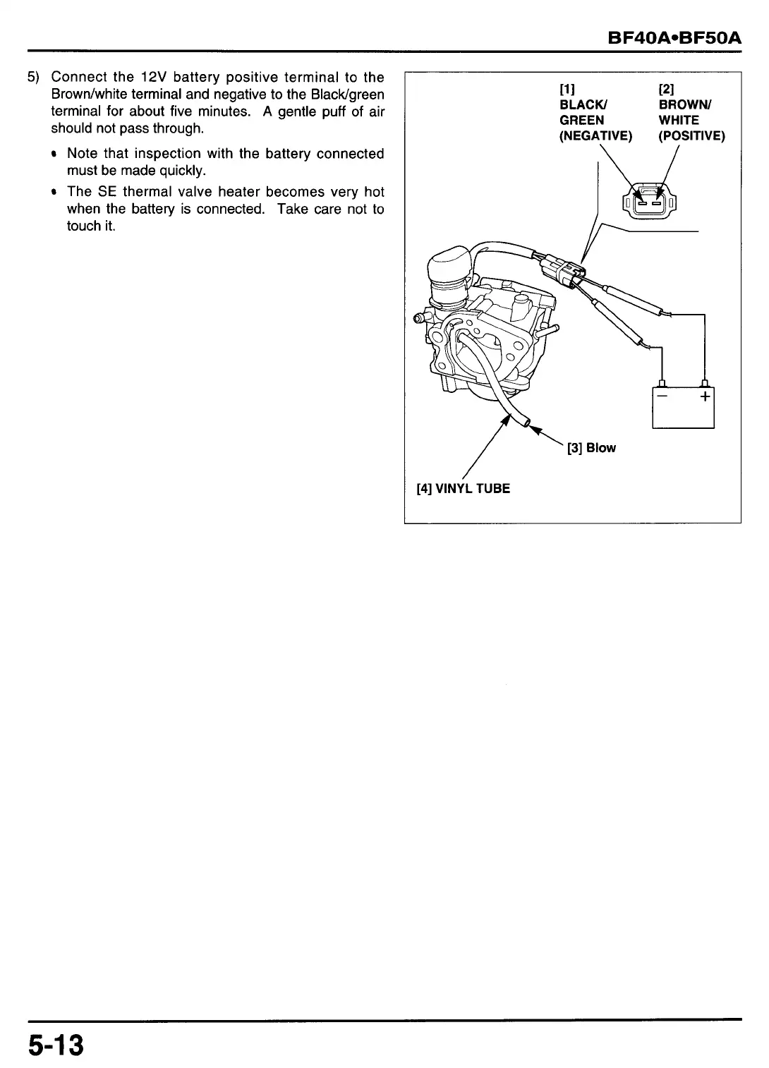 Note that inspection with the battery connected