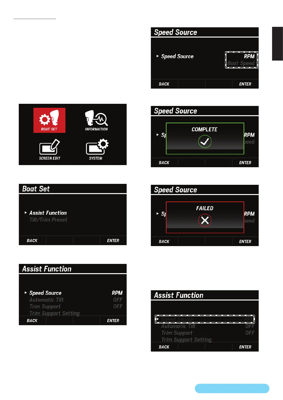 • If the Speed Source setting is not completed, the FAILED