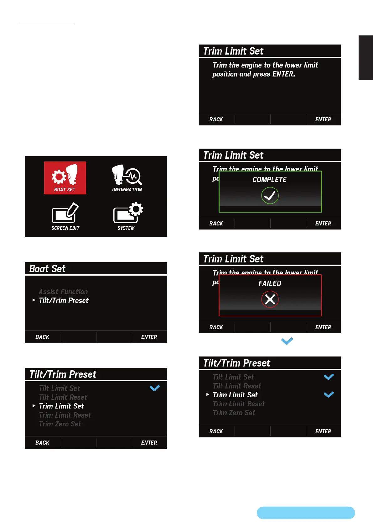 • If the Trim Limit Set setting is not completed, the FAILED