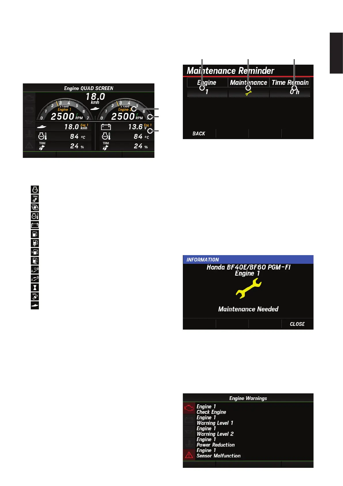Engine warning screen