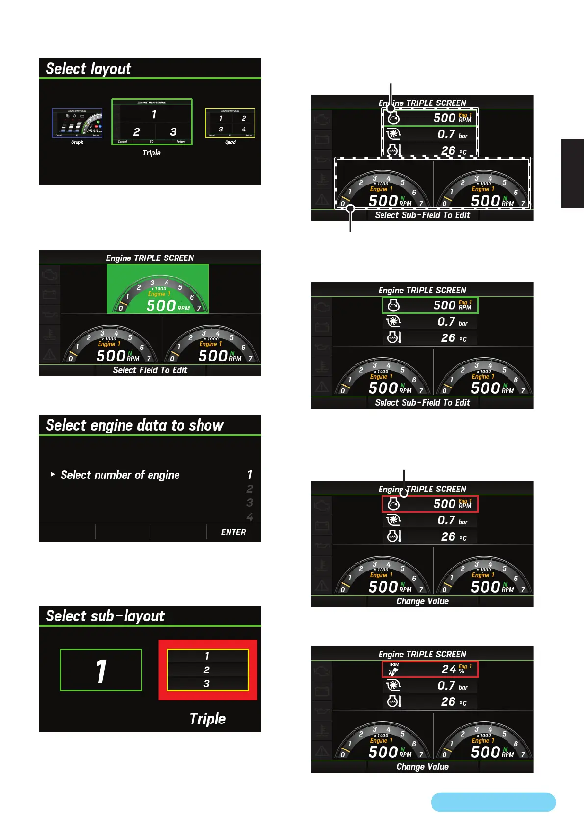 6. [∧]/[∨]ボタンを押して情報を表示させたいエンジ