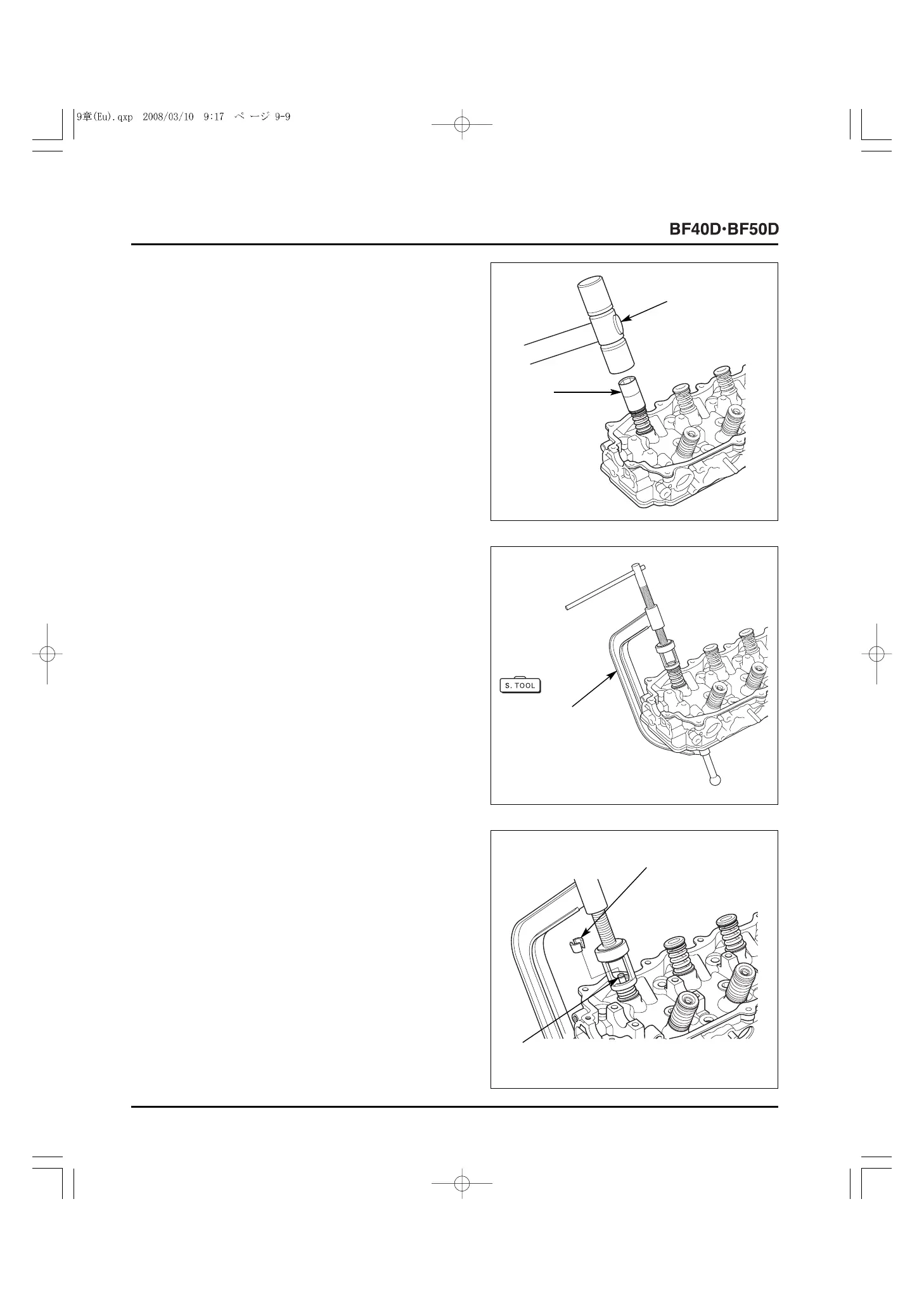 10) Compress the valve springs using the special tool as