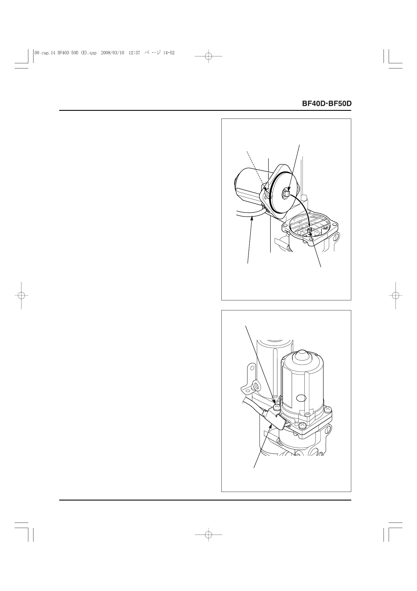 • Install with the power tilt motor wire toward the oil filler