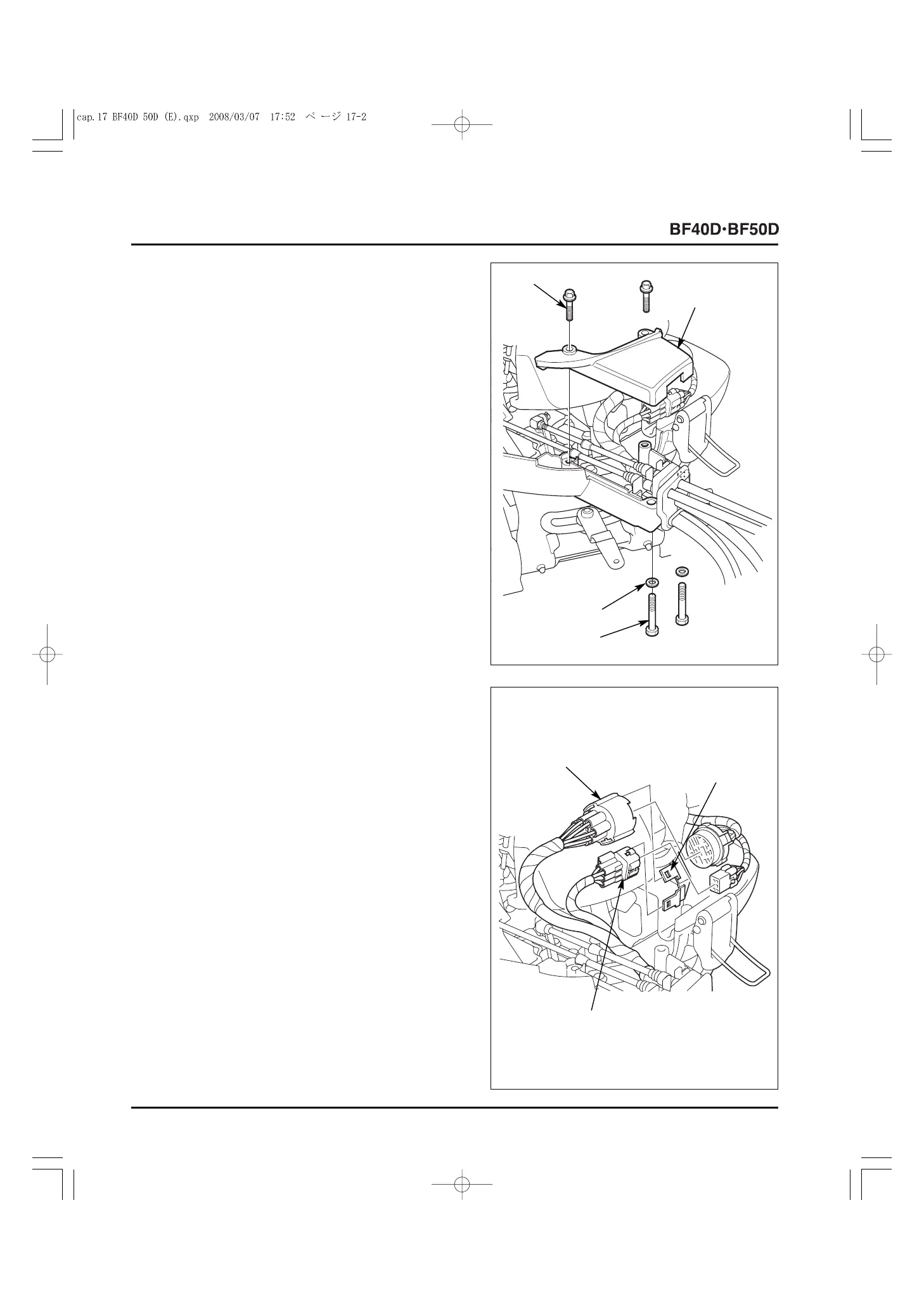 2) Remove the two 6 x 28 mm flange bolts, two 6 x 40 mm hex