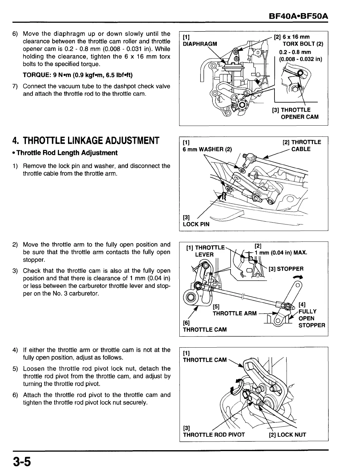 throttle rod pivot from the throttle cam, and adjust by