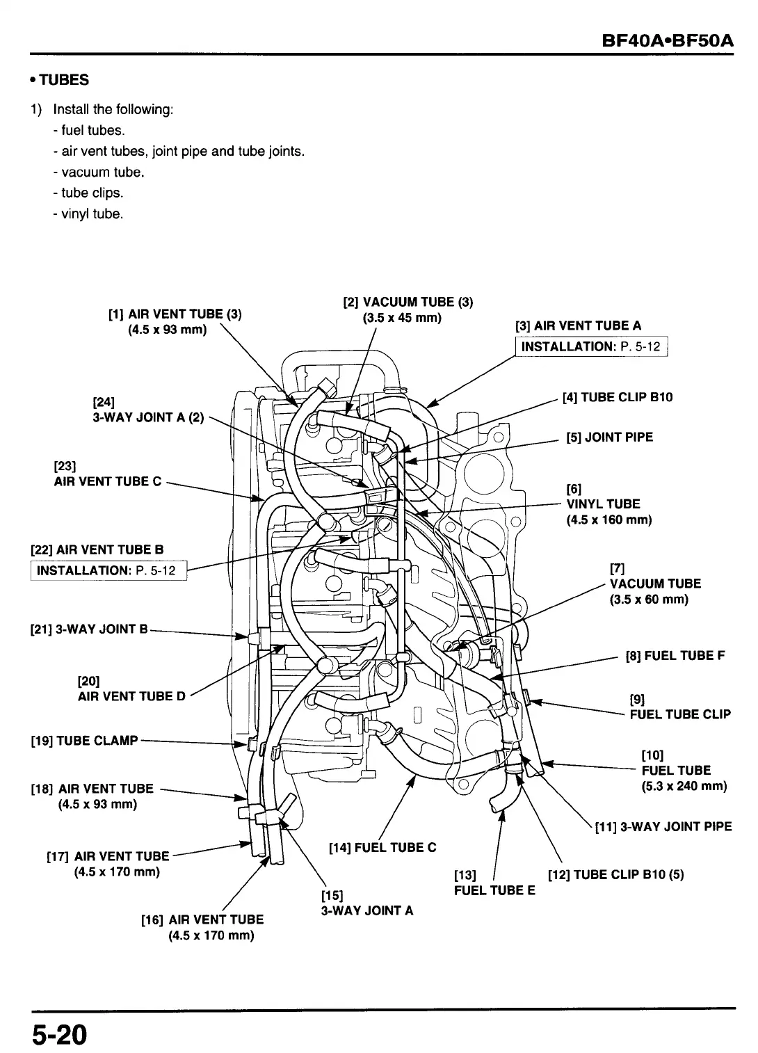 air vent tubes, joint pipe and tube joints.
