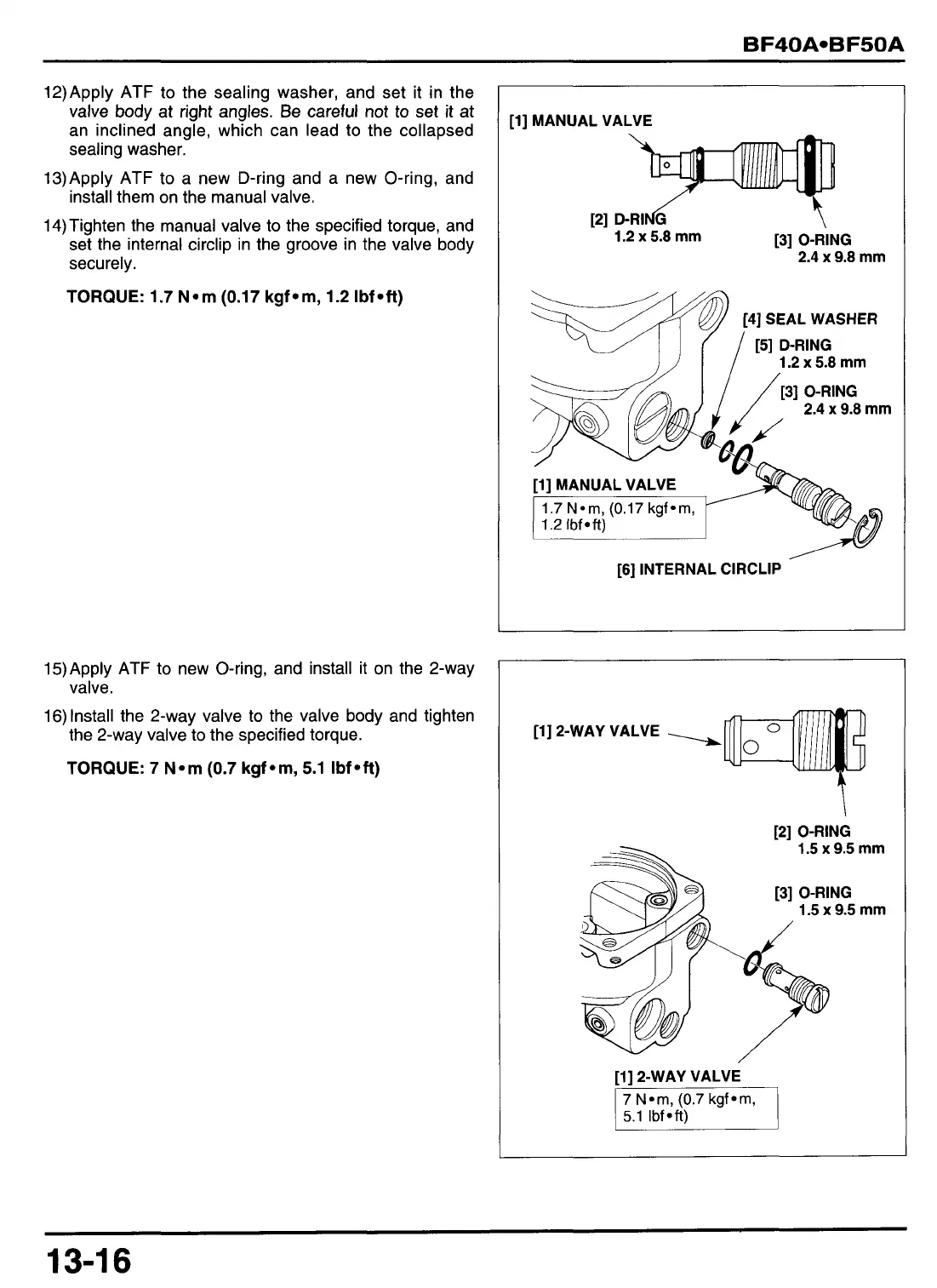 16) Install the 2-way valve to the valve body and tighten