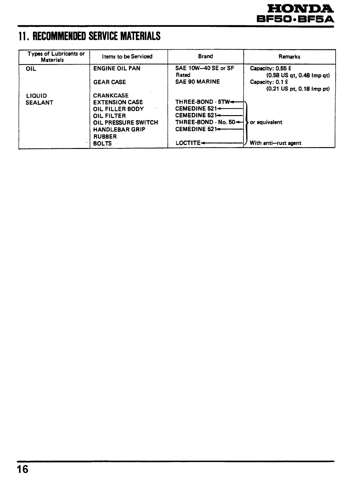 Honda BF50S - Recommended Service Materials