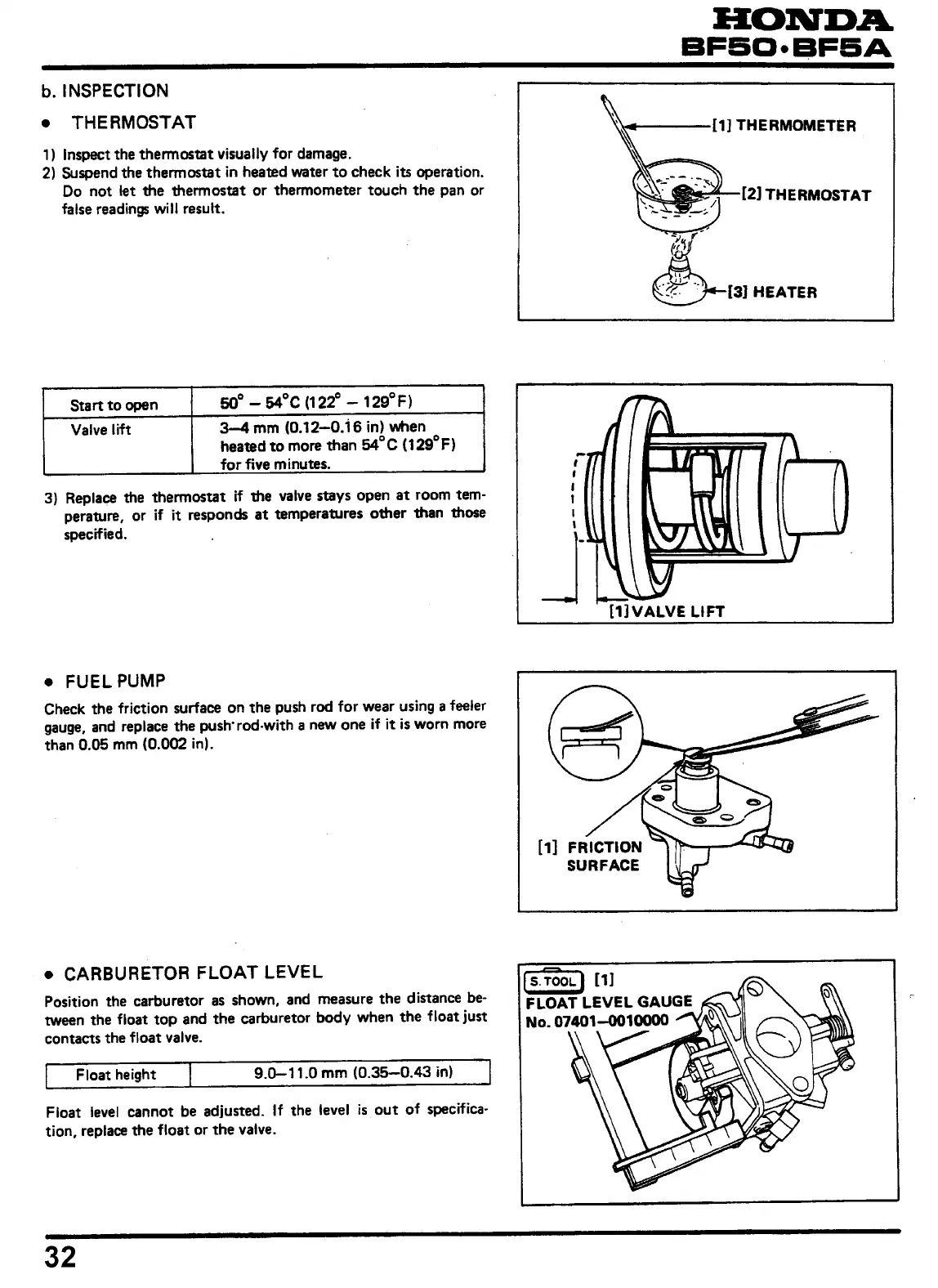 Honda BF50S - Inspection; Thermostat; Carburetor Float Level