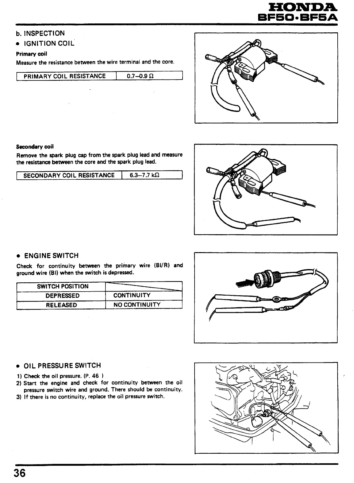 Honda BF50S - Ignition Coil; Primary Coil; Secondary Coil; Engine Switch