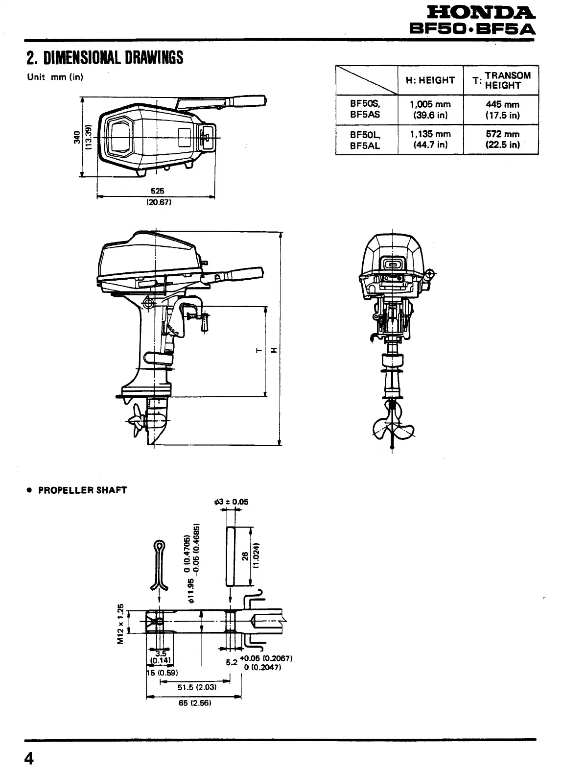 Honda BF50S - Dimensional Drawings; Propeller Shaft