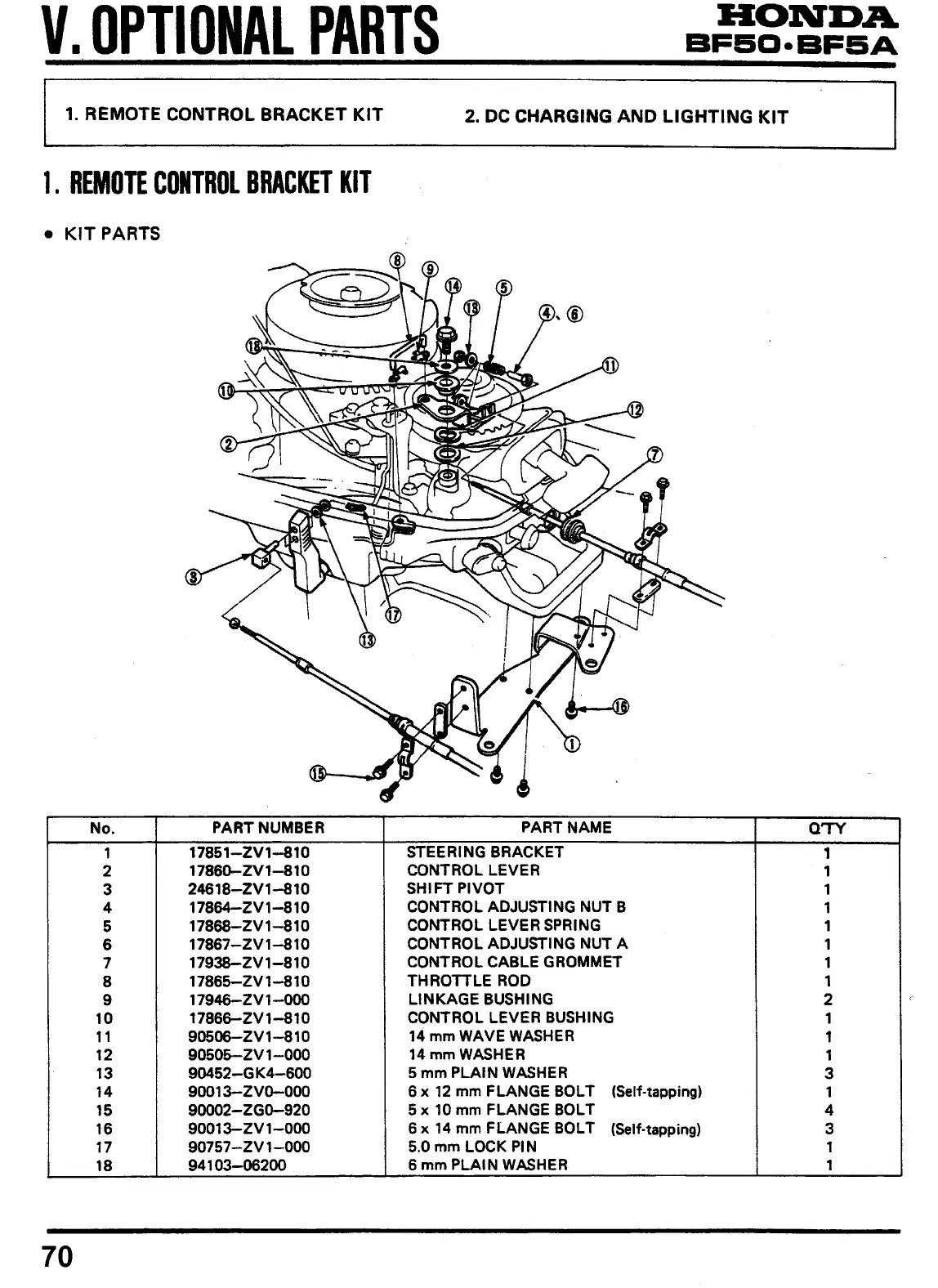 Honda BF50S - Optional Parts; Remote Control Bracket Kit; Kit Parts