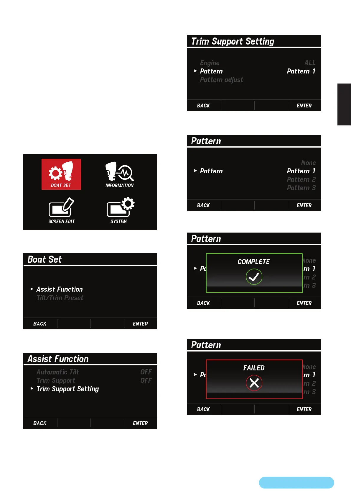 • Pattern の設定が完了しなかった場合、FAILED とポッ