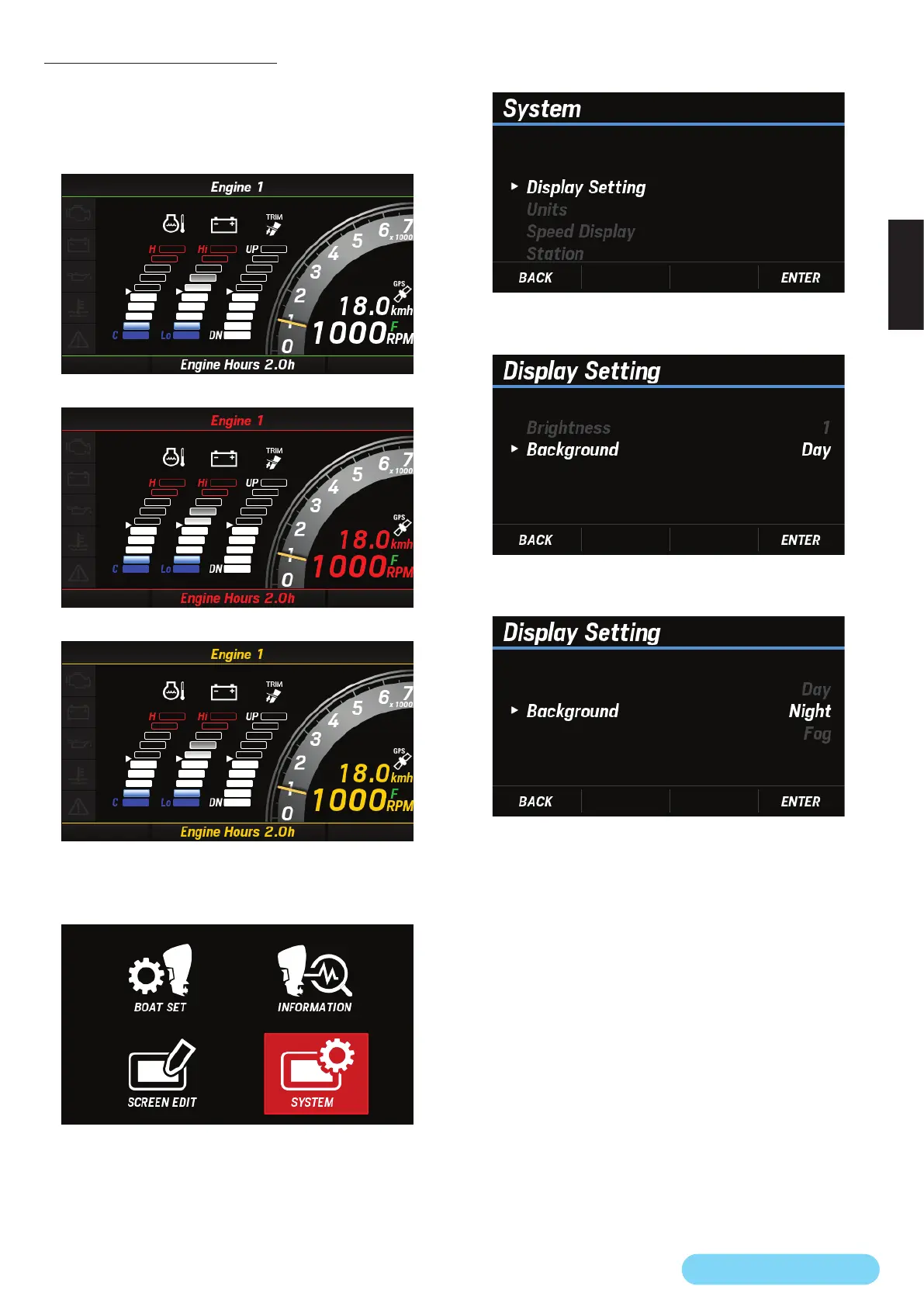 エンジン情報表示画面の背景色を以下の 3 タイプから選択