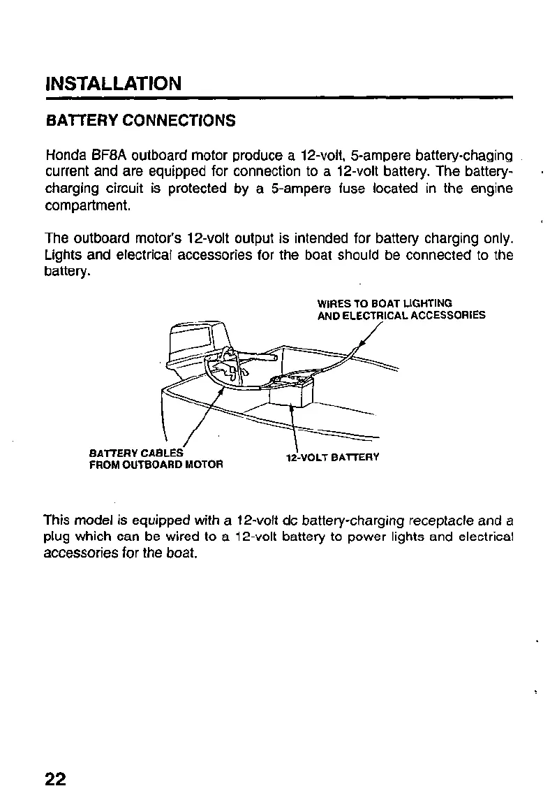 The outboard motor’s 12-volt output is intended for battery charging only.