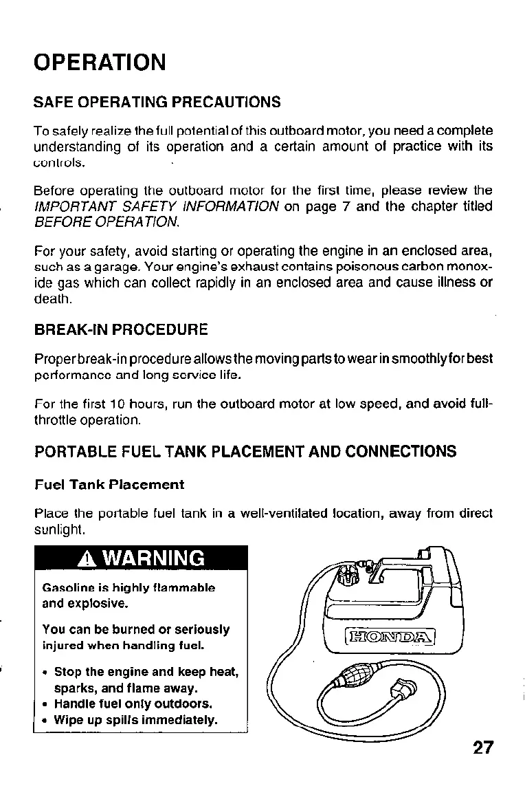 For the first 10 hours, run the outboard motor at low speed, and avoid full-