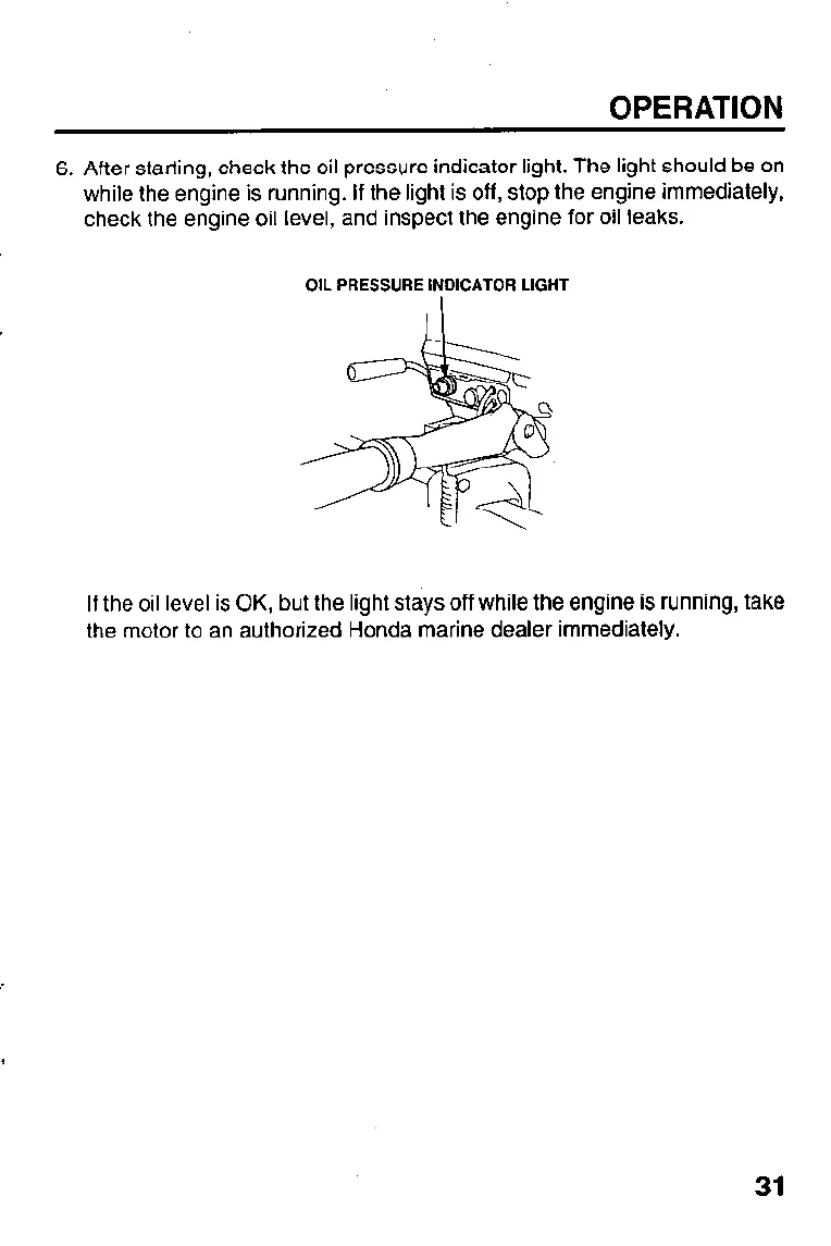 6. After starting, check the oil pressure indicator light. The light should be on