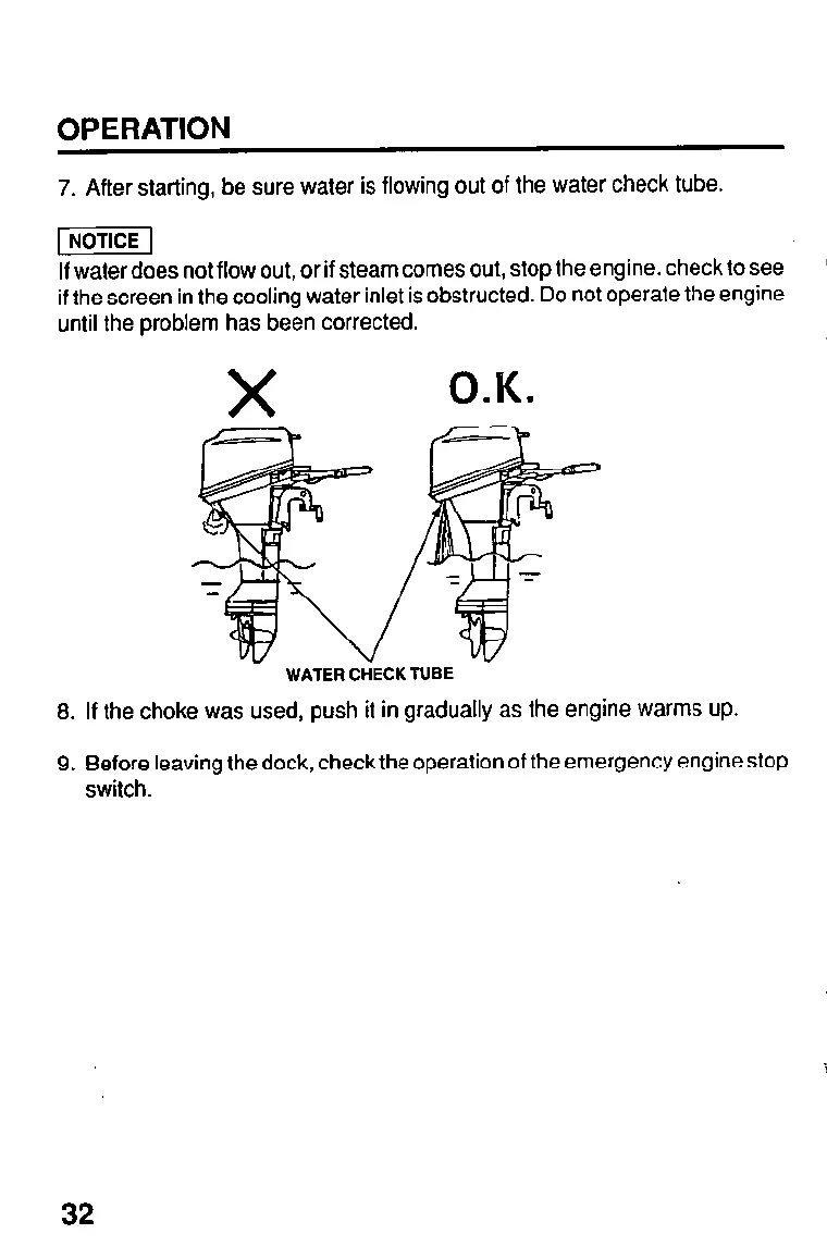 9. Before leaving the dock, check the operation of the emergency engine stop