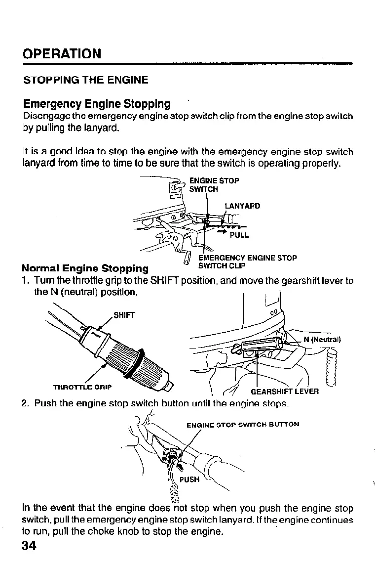 switch, pull the emergency engine stop switch lanyard. If the engine continues