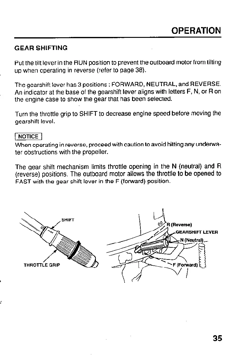 (reverse) positions. The outboard motor allows the throttle to