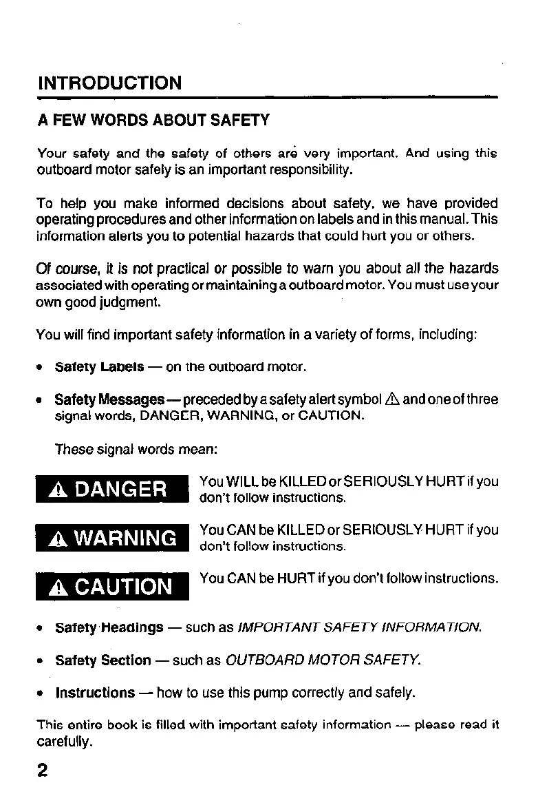 0 Safety Section - such as OUTBOARD MOTOR SAFETY.