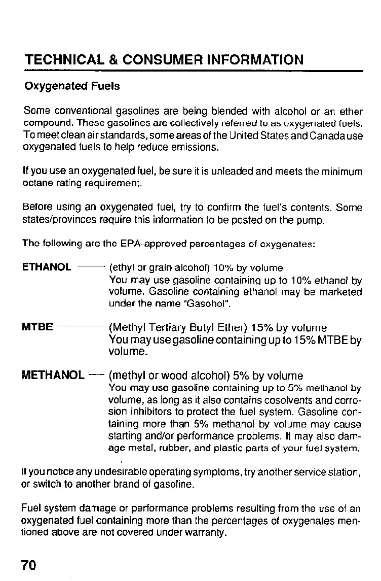 If you use an oxygenated fuel, be sure it is unleaded and meets the minimum