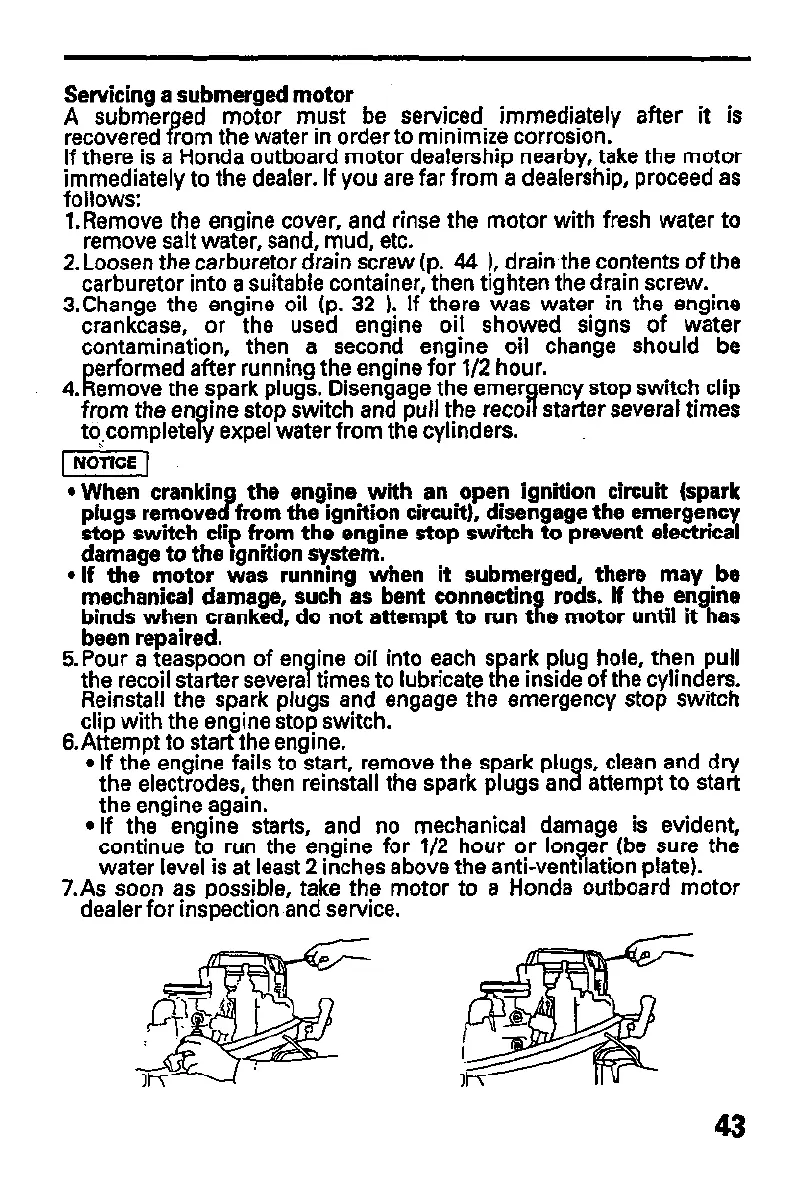 3.Change the engine oil (p. 32 1. If there was water in the engine