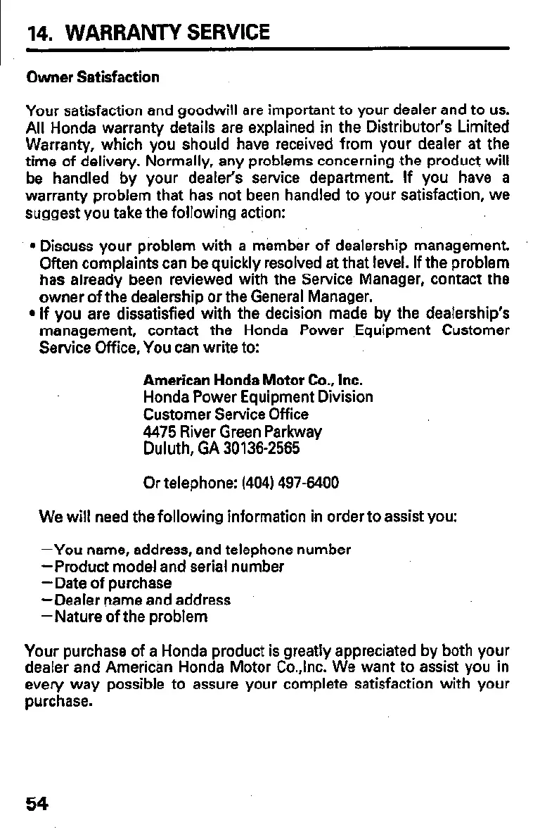 management, contact the Honda Power ,Equipment Customer