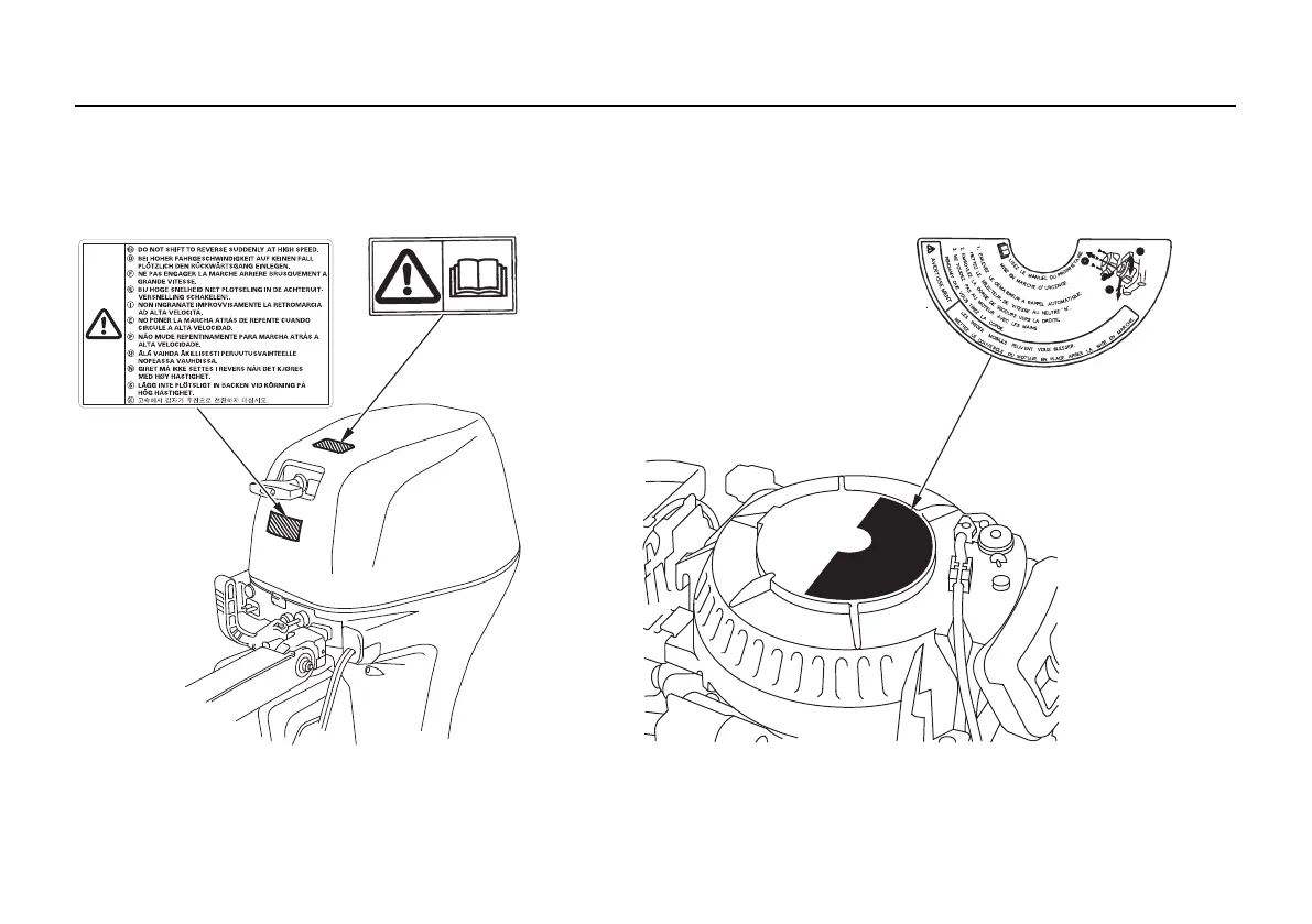 permanent parts of your outboard motor. If a label comes off or becomes hard to read, contact an authorized Marine