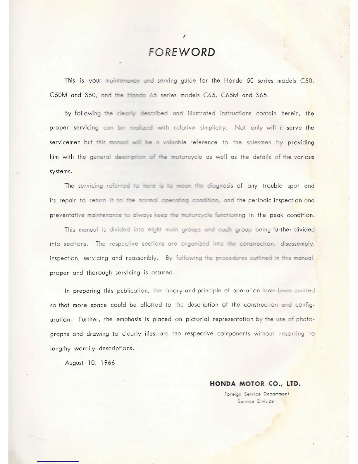 Honda C50M - Foreword