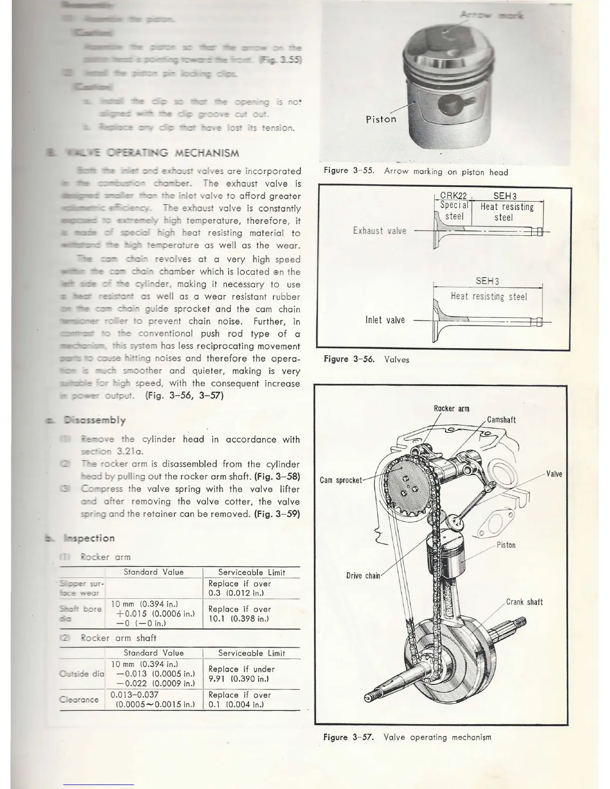 Honda C65 - 8 Valve Operating Mechanism; Valve Operating Mechanism Disassembly; Valve Operating Mechanism Inspection; Arrow Marking on Piston Head View