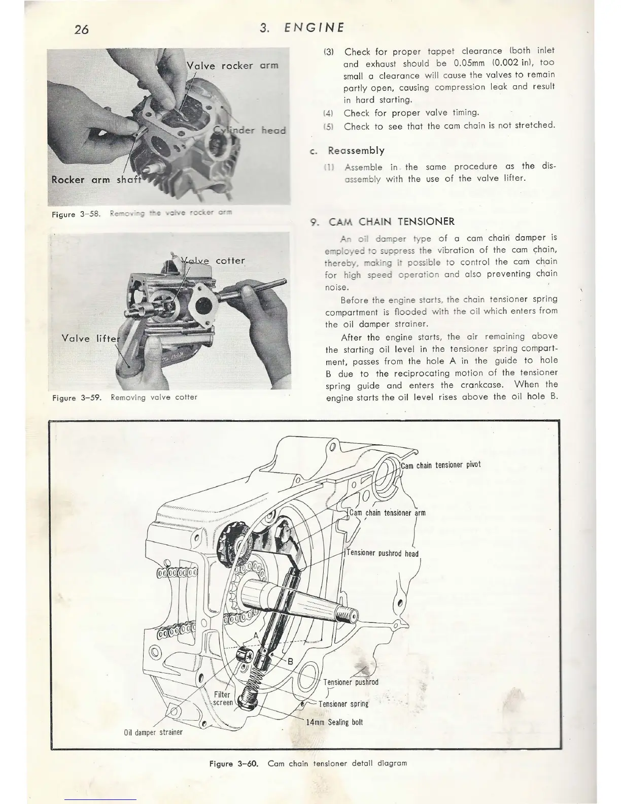 Honda C65 - Cam Chain Tensioner; Valve Operating Mechanism Reassembly; Removing the Valve Rocker Arm; Removing Valve Cotter
