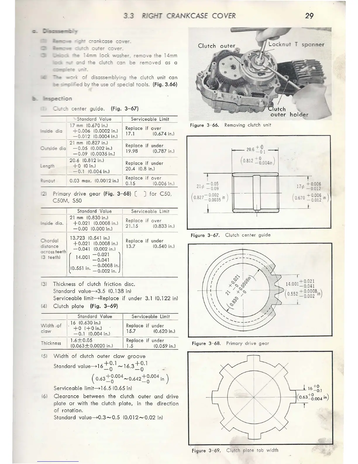 Honda C65 - Clutch Disassembly; Clutch Inspection; Clutch Center Guide Diagram; Primary Drive Gear Diagram