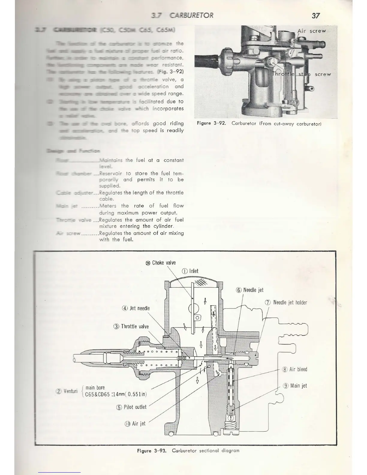 Honda C65 - Carburetor System Operation and Adjustment
