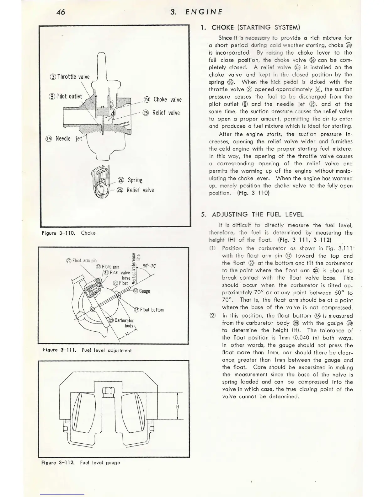 Honda C65 - Choke (Starting System); Adjusting the Fuel Level; Fuel Level Gauge Diagram