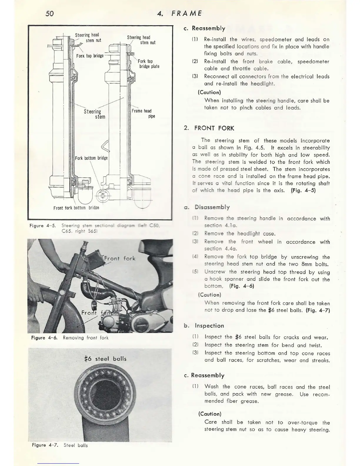 Honda C65 - Steering Handle Reassembly; Front Fork Disassembly; Front Fork Inspection; Front Fork Reassembly