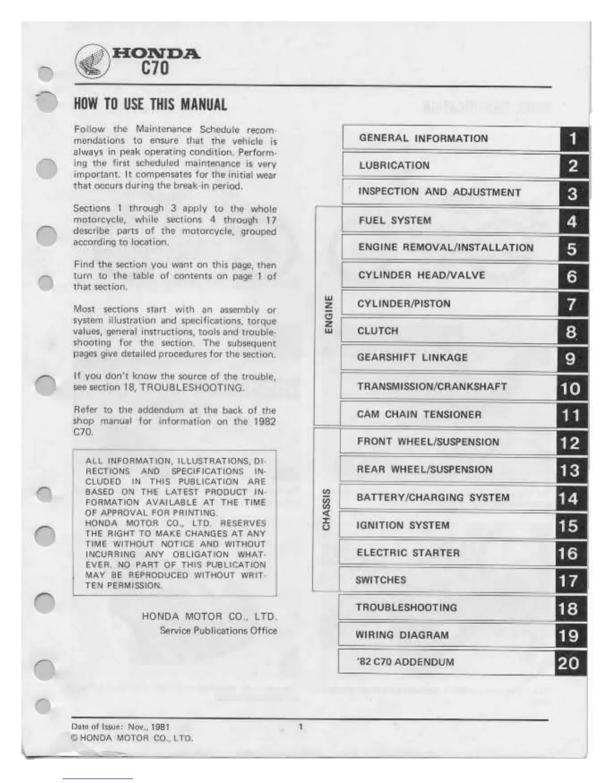 Honda C70 - Contents
